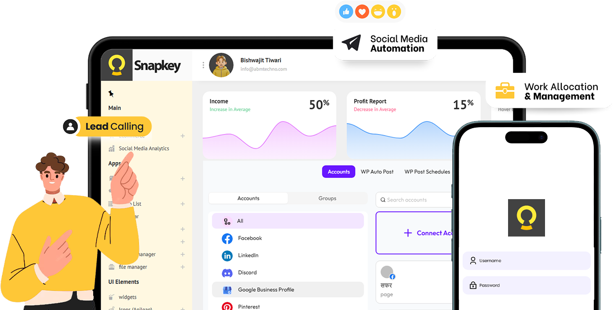Manual tasks slow down your business. With SnapKey.in, automate everything from social media posting and bulk mailing to lead tracking and appointment scheduling.